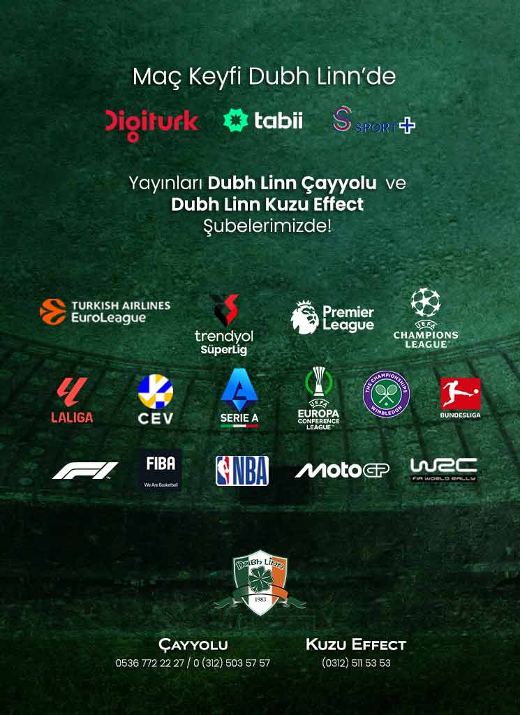 Sadece bir pub olmanın ötesine geçerek, dünya mutfaklarından lezzetler, zengin içecek menüsü, canlı spor etkinlikleri ve çeşitli etkinlikler için uygun atmosferi ile Dubh Linn, misafirlerinin memnuniyetini her zaman öncelikli hedefi olarak belirler.